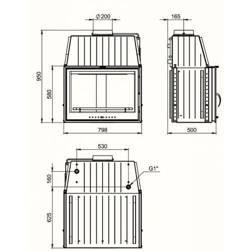 - Диаметр дымохода: 200 мм;
