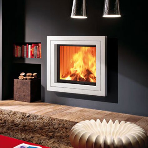 Каминная стальная рамка в современном стиле белого цвета.