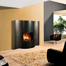 Полукруглая форма стекла модели Speedy MRh придает камину элегантность и расширяет обзор горящего в топке огня.